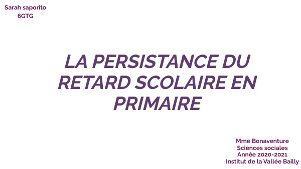 LA PERSISTANCE DU RETARD SCOLAIRE EN PRIMAIRE