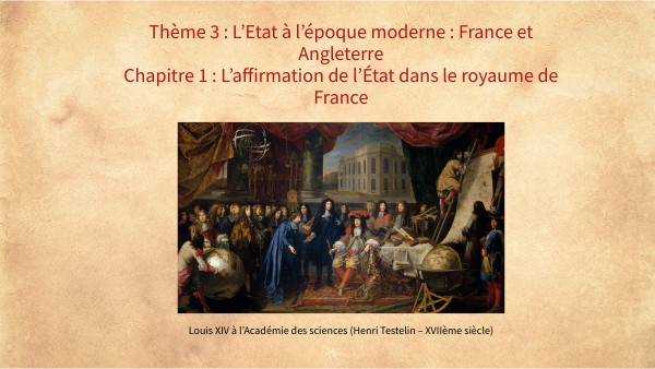 Thème 3 : L’Etat à l’époque moderne : France et Angleterre Chapitre 1 : L’affirmation de l’État dans le royaume de France