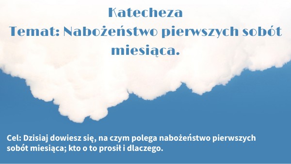 Cel: Dzisiaj dowiesz się, na czym polega nabożeństwo pierwszych sobót miesiąca; kto o to prosił i dlaczego.