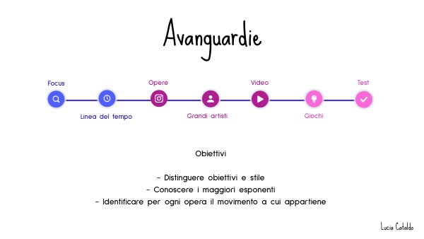 Obiettivi - Distinguere obiettivi e stile - Conoscere i maggiori esponenti - Identificare per ogni opera il movimento a cui appartiene