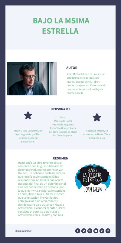 John Michael Green es un escritor estadounidense de literatura juvenil, blogger en YouTube y productor ejecutivo. Es reconocido mayormente por su libro Bajo la misma estrella