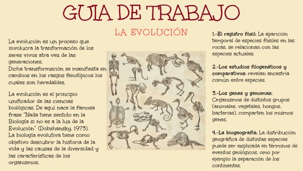 GUIA DE TRABAJO DE EVIDENCIAS DE LA EVOLUCIÓN