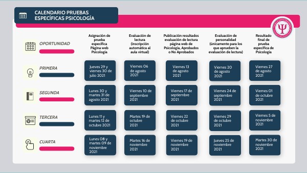CALENDARIO PRUEBAS ESPECÍFICAS PSICOLOGÍA