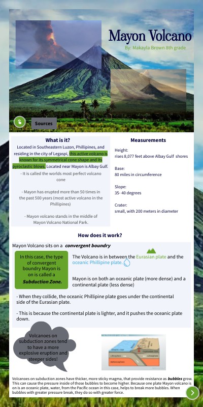 Volcanoes on subduction zones have thicker, more sticky magma, that provide resistance as grow. This can cause the pressure inside of those bubbles to become higher. Because one plate Mayon volcano is on is an oceanic plate, water, from the Pacific ocean in this case, helps to break more bubbles. When bubbles with greater pressure break, they do so with greater force.