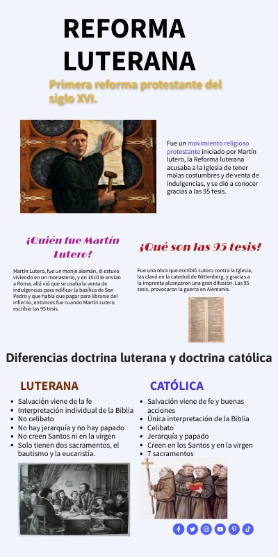 Fue un movimiento religioso protestante iniciado por Martín lutero, la Reforma luterana acusaba a la Iglesia de tener malas costumbres y de venta de indulgencias, y se dió a conocer gracias a las 95 tesis.