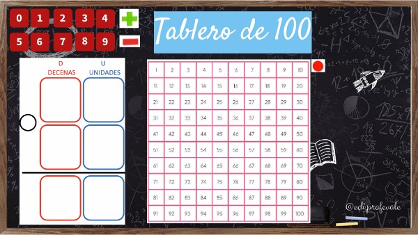 Los principales objetivos del tablero de 100 es trabajar el conteo, operaciones básicas de adición y sustracción.