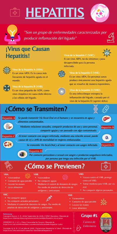 ReferenciasConcepció Bartres, S. R. (20 de Septiembre de 2018). CLÍNIC Barcelona. Obtenido de https://www.clinicbarcelona.org/asistencia/enfermedades/hepatitis-virica/causas HERRERO, D. J. (s.f.). Clínica Universidad de Navarra. Obtenido de https://www.cun.es/enfermedades-tratamientos/enfermedades/hepatitis-virales Stockdale AJ, K. B. (27 de Julio de 2020). Organizacion Mundial de la Salud . Obtenido de https://www.who.int/es/news-room/fact-sheets/detail/hepatitis-d