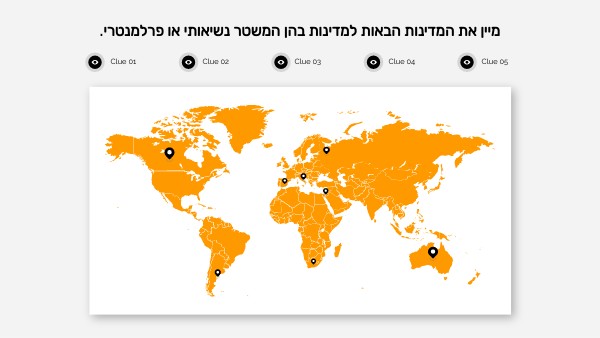 .מיין את המדינות הבאות למדינות בהן המשטר נשיאותי או פרלמנטרי