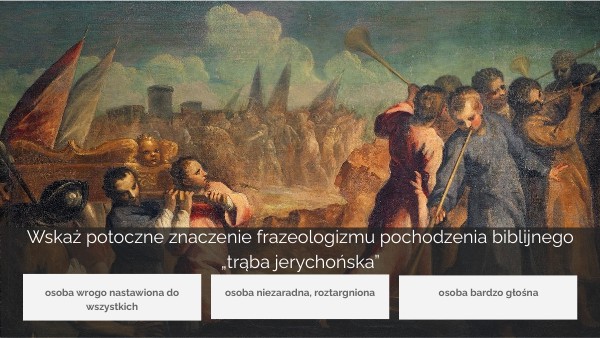 Wskaż potoczne znaczenie frazeologizmu pochodzenia biblijnego „trąba jerychońska”