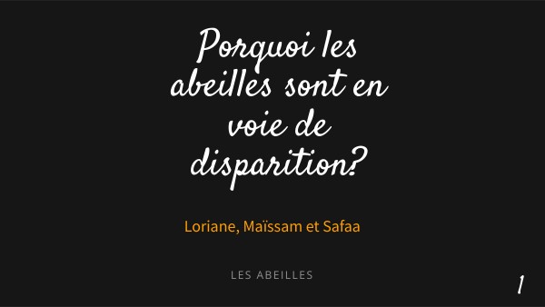 1-Qu'est-qu'une abeille ? 2-Pourquoi elles sont importantes ? 3-Pourquoi sont-elles en voie de disparition ? 4-A quoi une abeille sert-elle dans notre environnement ? 5-Comment peut-on les aider ? 6-Conclusion 7-Sources.
