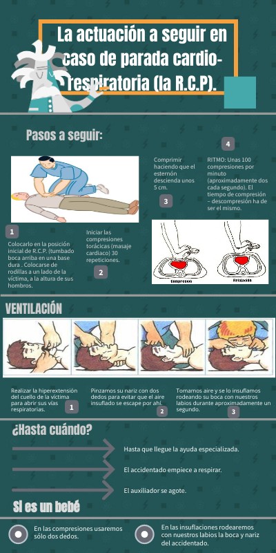La actuación a seguir en caso de parada cardio-respiratoria (la R.C.P).