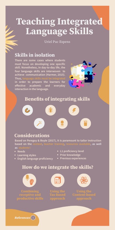 There are some cases where students must focus on developing one specific skill. Nonetheless, in day-to-day life, the four language skills are interwoven to achieve communication (Harmer, 2015). Thus, language skills must be integrated in order to prepare the learners for effective academic and everyday interaction in the language.