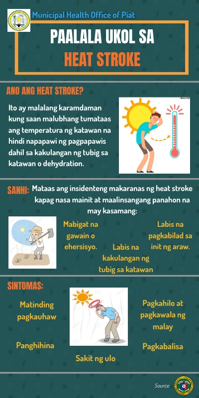Mataas ang insidenteng makaranas ng heat stroke kapag nasa mainit at maalinsangang panahon na may kasamang: