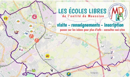 Plan de Mouscron avec le lien vers les écoles libres de l'entité.