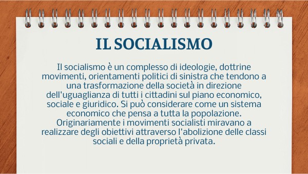 Il socialismo è un complesso di ideologie, dottrine movimenti, orientamenti politici di sinistra che tendono a una trasformazione della società in direzione dell'uguaglianza di tutti i cittadini sul piano economico, sociale e giuridico. Si può considerare come un sistema economico che pensa a tutta la popolazione. Originariamente i movimenti socialisti miravano a realizzare degli obiettivi attraverso l'abolizione delle classi sociali e della proprietà privata.