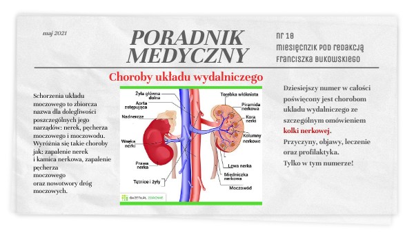 Dziesiejszy numer w całości poświęcony jest chorobom ukladu wydalniczego ze szczególnym omówieniem kolki nerkowej. Przyczyny, objawy, leczenie oraz profilaktyka. Tylko w tym numerze!