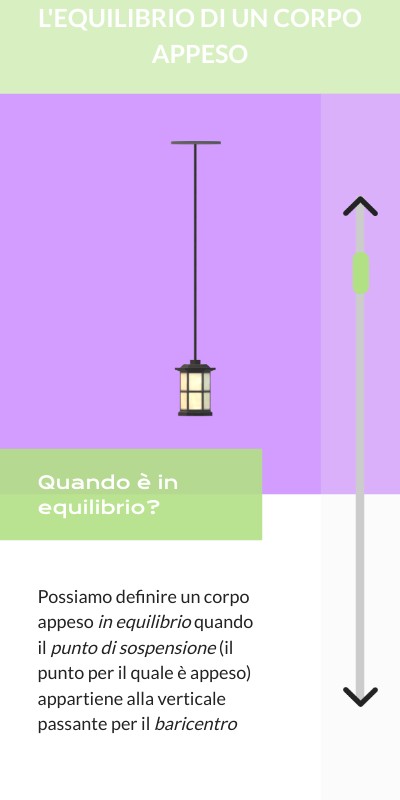 Possiamo definire un corpo appeso in equilibrio quando il punto di sospensione (il punto per il quale è appeso) appartiene alla verticale passante per il baricentro