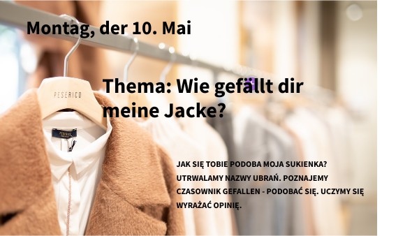 JAK SIĘ TOBIE PODOBA MOJA SUKIENKA? UTRWALAMY NAZWY UBRAŃ. POZNAJEMY CZASOWNIK GEFALLEN - PODOBAĆ SIĘ. UCZYMY SIĘ WYRAŻAĆ OPINIĘ.