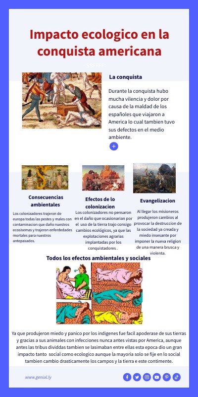 Ya que produjeron miedo y panico por los indigenes fue facil apoderase de sus tierras y gracias a sus animales con infecciones nunca antes vistas por America, aunque antes las tribus dividdas tambien se lasimaban entre ellas esta epoca dio un gran impacto tanto social como ecologico aunque la mayoria solo se fije en lo social tambien cambio drasticamente los campos y la tierra e este contimente.
