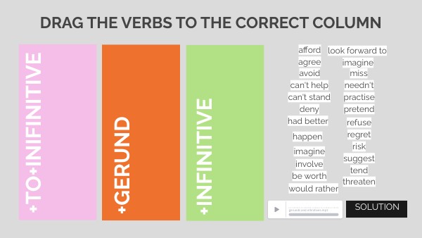 DRAG THE VERBS TO THE CORRECT COLUMN