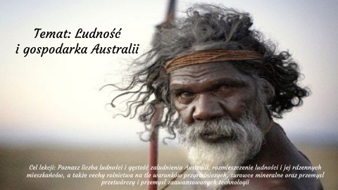 Cel lekcji: Poznasz liczba ludności i gęstość zaludnienia Australii, rozmieszczenie ludności i jej rdzennych mieszkańców, a także cechy rolnictwa na tle warunków przyrodniczych, surowce mineralne oraz przemysł przetwórczy i przemysł zaawansowanych technologii