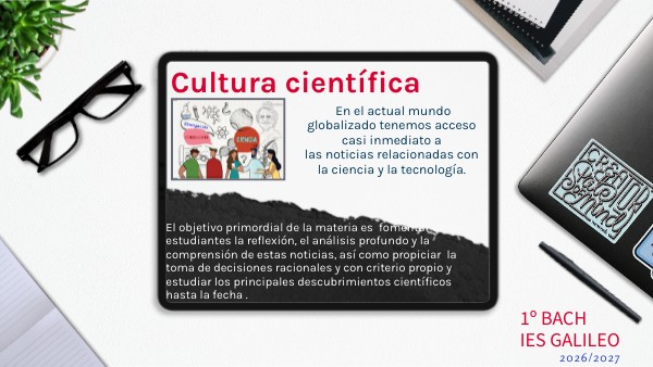 Esta asignatura va dirigida a todo el alumnado, independientemente del itinerario elegido, porque aporta unas nociones sobre ciencia y tecnología que te permitirán satisfacer tu curiosidad, desarrollar una opinión crítica sobre temas relacionados con la ciencia y evitar la desinformación o el engaño. Además te permitirá actuar como un ciudadano autónomo, crítico y responsable.