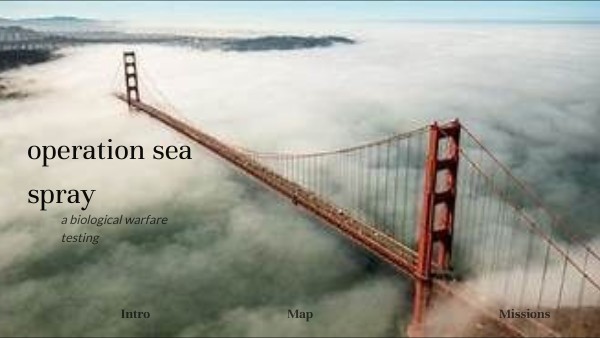 Operation sea spray was a secret US navy experiment where they released Serratia marcescens and Bacillus globigii bacteria into the air of the San Francisco bay area which occurred on Sept. 20-27, 1950.