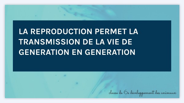 Résumé :La rencontre entre un spermatozoïde et un ovule forme une cellule-œuf : c’est la fécondation.La fécondation a lieu dans l’organisme maternel. Cette cellule se développe dans l’utérus de la mère, en un embryon, puis un fœtus.Après sa naissance, le bébé, garçon ou fille, grandit, devient un enfant puis un adolescent et enfin un homme ou une femme adulte.