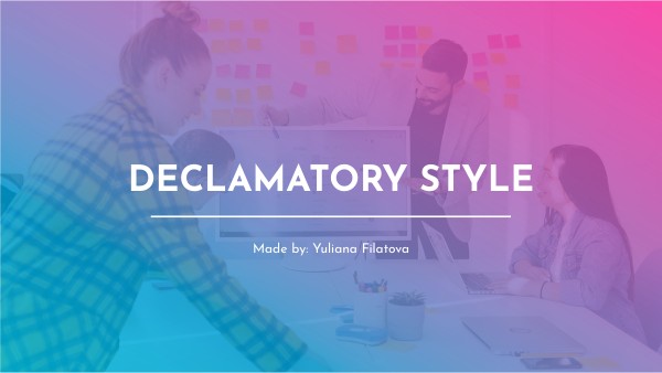 This is a highly emotional and expressive intonational style, that is why it needs special training. Attitudinal, volitional and intellectual functions of intonation are of primary importance here and serve to appeal to the mind, will and feelings of the listener. This style can be heard on the stage, on the screen, in a TV studio, thus we see that it is always a written form of the language read aloud or recited.
