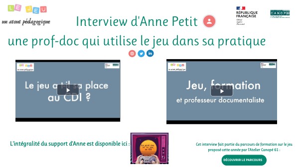 Cet interview fait partie du parcours de formation sur le jeu proposé cette année par l'Atelier Canopé 61 :
