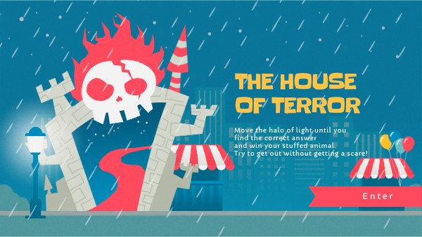 Move the beam of light until you find the correct answer and win your stuffed animal. Try to get out without getting a scare!