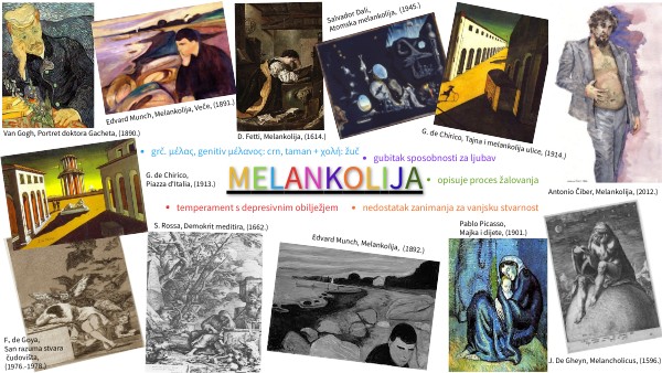 - grč. μέλας, genitiv μέλανος: crn, taman + χολή: žuč