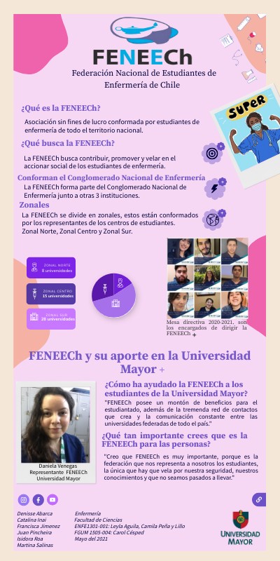 Denisse Abarca Enfermería Catalina Inai Facultad de Ciencias Francisca Jimenez ENFE1301-001: Leyla Aguila, Camila Peña y Lillo Juan Pincheira FGUM 1505-004: Carol Césped Isidora Roa Mayo del 2021 Martina Salinas