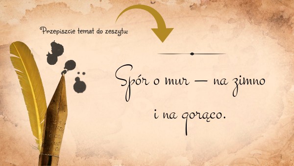 Czy współcześnie ludzie także stawiają bariery nie do pokonania? Budują mury? Znacie ten motyw z innych tekstów kultury? Może z historii? Posłuchajcie słynnej Arhaji i napiszcie, jak rozumiecie słowa tej piosenki. Widzicie jakiś związek pomiędzy słowami tego utworu a treścią "Zemsty"?