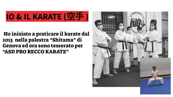 Ho iniziato a praticare il karate dal 2013 nella palestra “Shitama” di Genova ed ora sono tesserato per “ASD PRO RECCO KARATE”