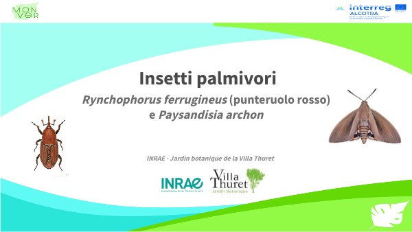 - "Enjeux et impacts des principaux insectes ravageurs des palmiers en France : Rynchophorus ferrugineus et Paysandisia archon - Mémoire thématique proposé par Emmanuelle Juillet dans le cadre de son expérience de stage à l'INRAE d'Antibes - 2020
