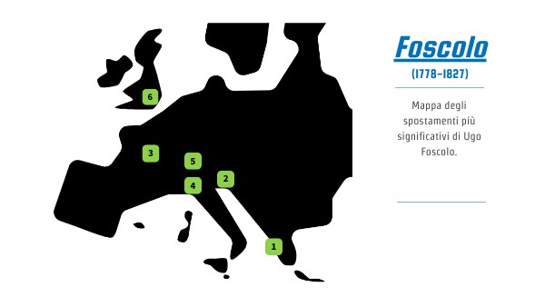 Mappa degli spostamenti più significativi di Ugo Foscolo.