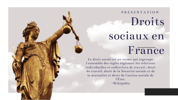 Le droit socialest ensemble des règles régissant dans les relations individuelles et collectives de travail: -le Droit du travail- le Droit de la Sécurité social. Droit privé et le Droit public, le droit social encadre la relation de travail entre salariés et employeurs