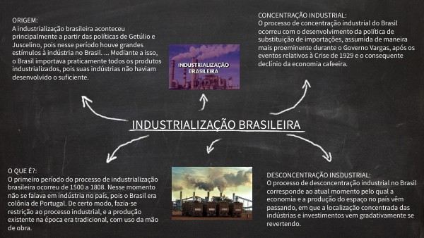 ORIGEM:A industrialização brasileira aconteceu principalmente a partir das políticas de Getúlio e Juscelino, pois nesse período houve grandes estímulos à indústria no Brasil. ... Mediante a isso, o Brasil importava praticamente todos os produtos industrializados, pois suas indústrias não haviam desenvolvido o suficiente.