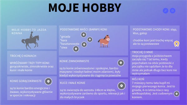 TROCHĘ O MNIEmoja przygoda z jeździectwem zaczęła się 7 lat temu, kiedy pojechałam na obóz jeżdziecki z początku nie sądziłam że to dla mnie ale jednak długo bez koni nie wytrzymałam