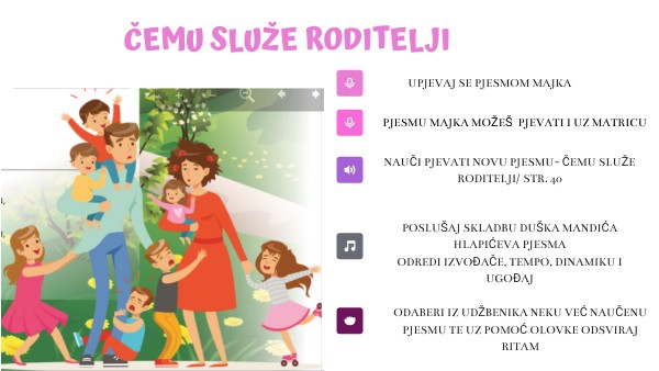 NAUČI PJEVATI NOVU PJESMU- ČEMU SLUŽE RODITELJI/ str. 40