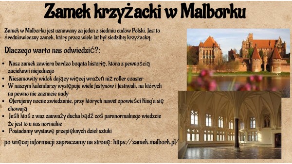 po więcej informacji zapraczamy na stronę: https://zamek.malbork.pl/