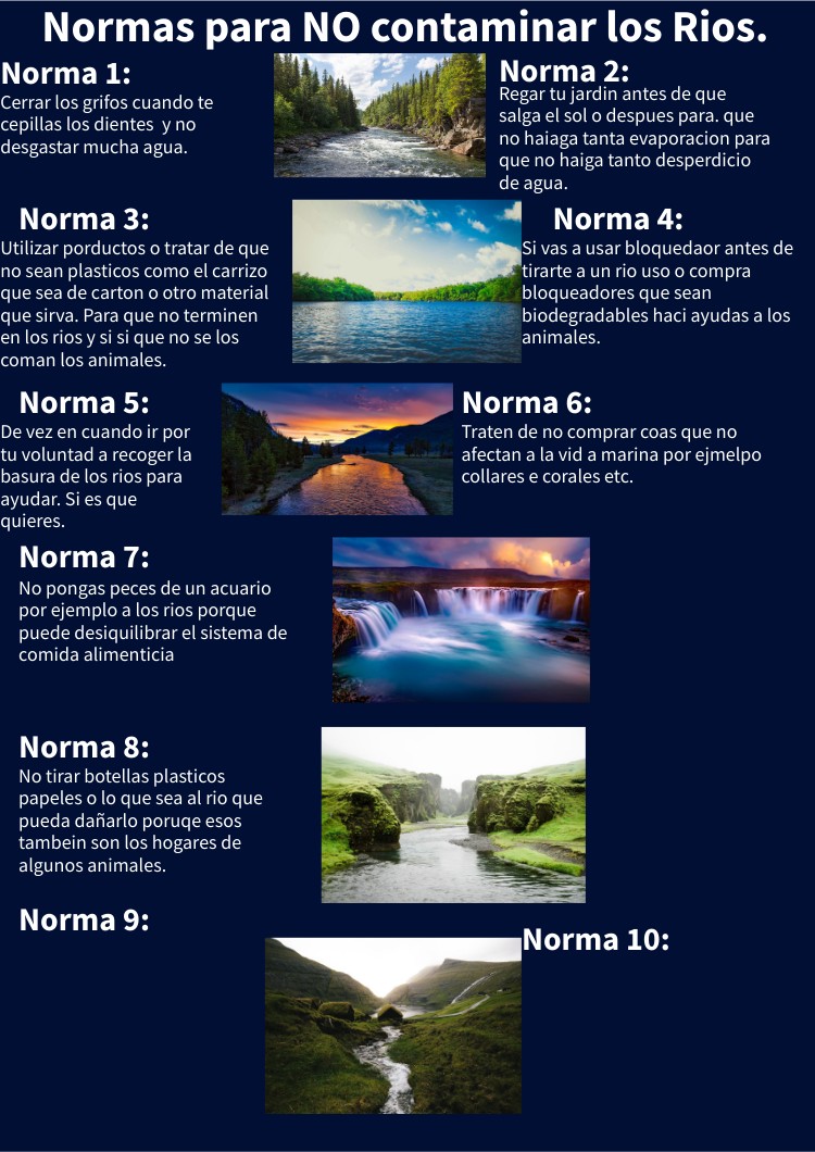 No tirar botellas plasticos papeles o lo que sea al rio que pueda dañarlo poruqe esos tambein son los hogares de algunos animales.