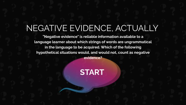 "Negative evidence" is reliable information available to a language learner about which strings of words are ungrammatical in the language to be acquired. Which of the following hypothetical situations would, and would not, count as negative evidence?