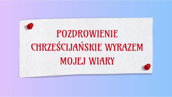 Zapiszcie temat lekcji do zeszytu: Pozdrowienie chrześcijańskie wyrazem mojej wiary