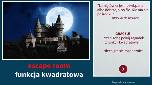 GRACZU! Przed Tobą pokój zagadek z funkcji kwadratowej. Niech gra się rozpocznie!