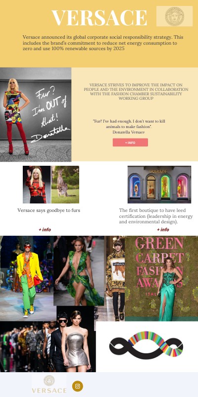 Versace announced its global corporate social responsibility strategy. This includes the brand’s commitment to reduce net energy consumption to zero and use 100% renewable sources by 2025