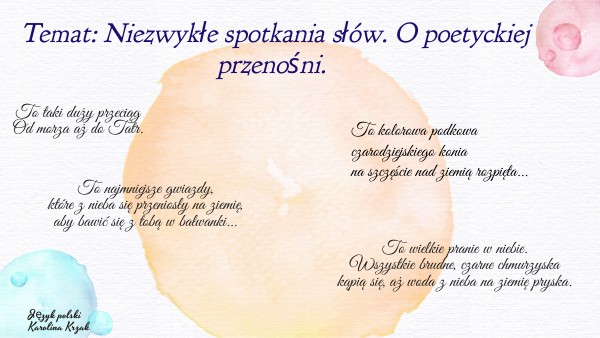 Temat: Niezwykłe spotkania słów. O poetyckiej przenośni.