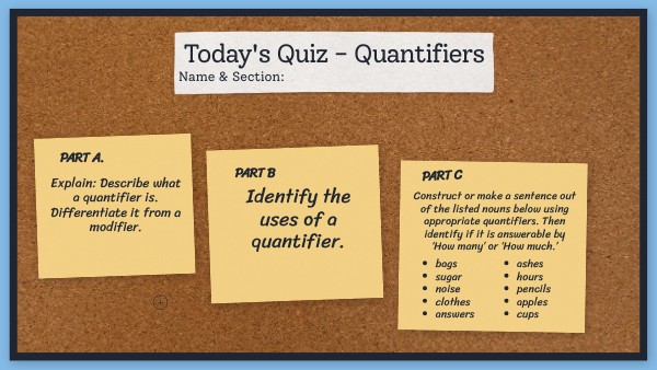 Today's Quiz - Quantifiers