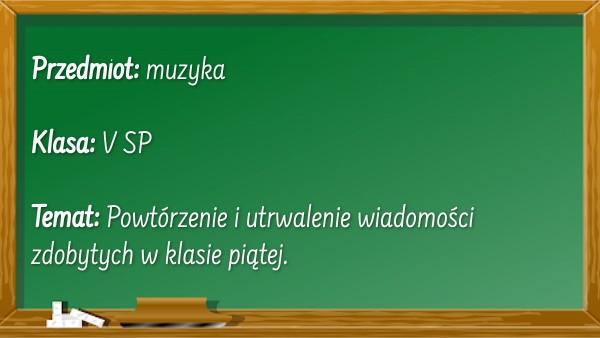 Przedmiot: muzyka Klasa: V SP Temat: Powtórzenie i utrwalenie wiadomości zdobytych w klasie piątej.